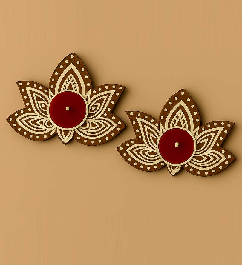 This handcrafted wooden lotus-leaf diya combines traditional Indian artistry with a clean, contemporary aesthetic. Its elegant silhouette and detailed white carvings make it a standout piece for any spiritual or decorative setting.