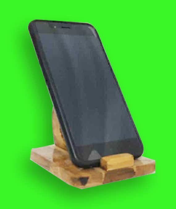 This is a handcrafted bamboo mobile phone stand, designed to provide a stable, hands-free viewing experience while adding a natural, organic touch to your desk or bedside table.